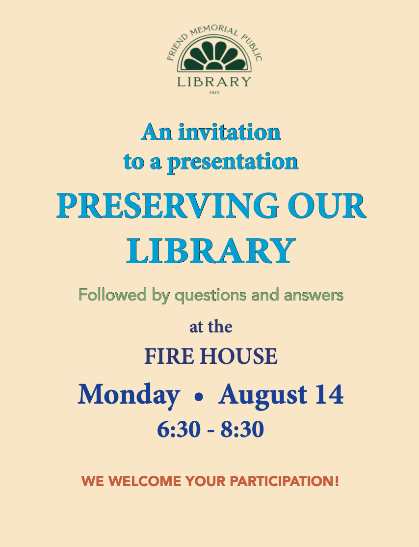 We invite all interested parties to attend this open meeting to learn more about the campaign and vision for the Library’s future.