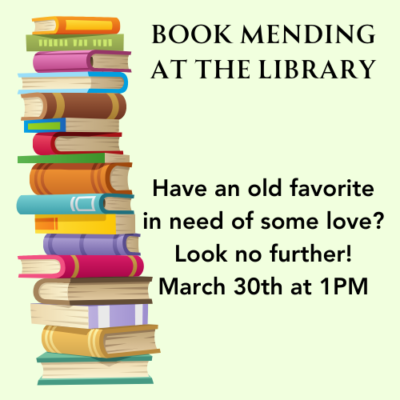 We’ll be doing book mending on Saturday March 30th at 1PM for everyone who needs to give their books some TLC. We hope to see you and your books there!